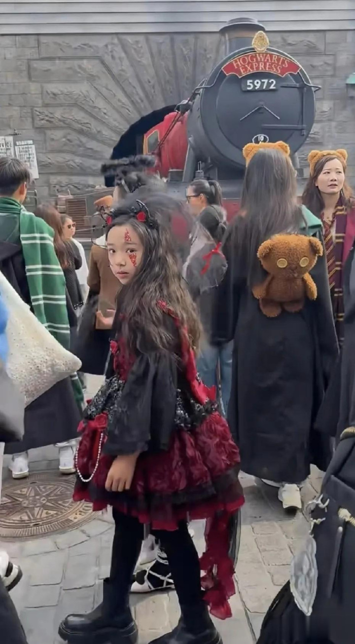 中秋最强遛娃天团, 董璇佟丽娅带青梅竹马逛环球, 小恶魔造型萌翻