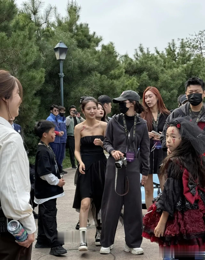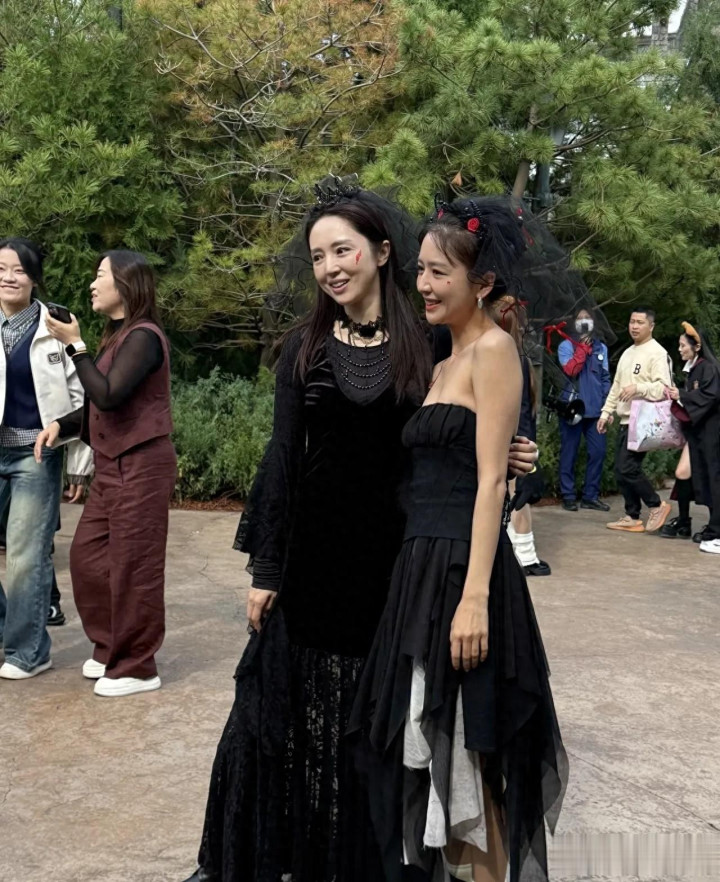 再看两位妈妈,佟丽娅打扮得清爽有活力,一路笑着给大家拍照;董璇素颜戴了黑头纱,虽有点疲惫,但眼睛全程盯着孩子,还贴心帮朵朵整理斗篷。路人求合影时她们也特亲切,一点架子没有。
